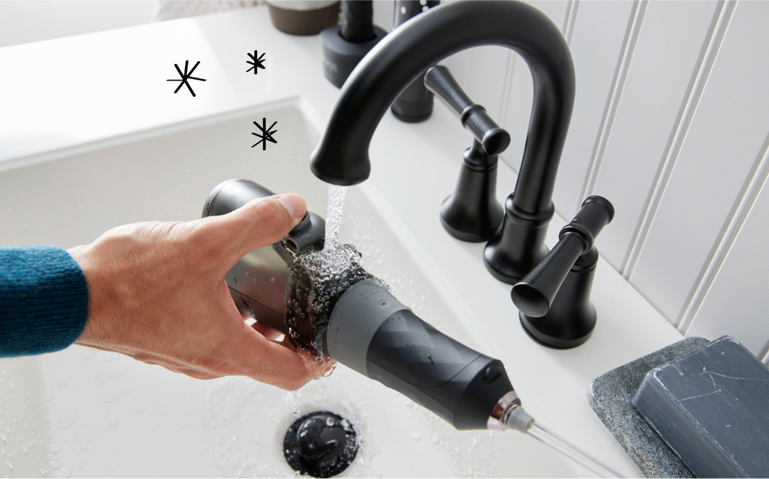 Our nozzle tips rotate 360° so you can reach even the most hard-to-reach areas in your mouth. Great for sensitive gums, braces, bridges or other dental work.